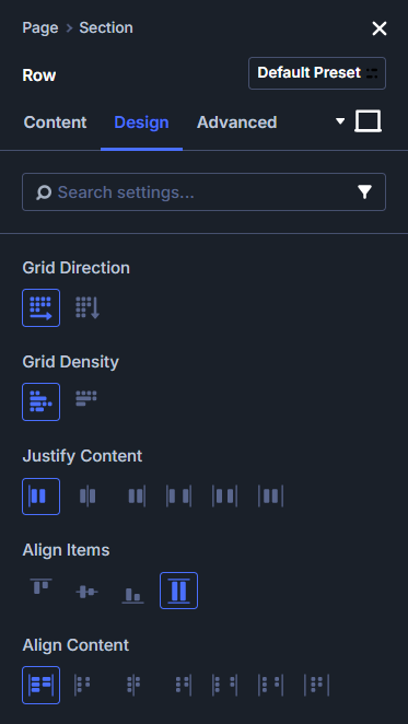 Eine wesentliche Neuerung ist auch, dass Container-Elemente (also Sections, Rows und Columns) nun wahlweise als Block, Flex oder Grid definiert werden können. Während Block dem bisherige Verhalten entspricht (untergeordnete Elemente belegen immer die gesamte Breite des Containers), kann man mit Flex oder Grid beliebig komplexe Layouts gestalten. Wem dies zu kompliziert ist, der kann aber weiterhin auf die bekannten Spaltenraster zurückgreifen.