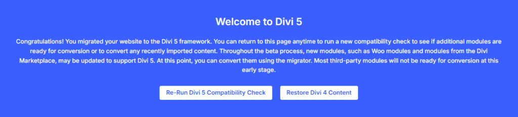 Glücklicherweise ist der Divi 5 Migrator auf solche Fälle vorbereitet und bietet die Möglichkeit, die konvertierten Seiten zurückzusetzen (Button «Restore Divi 4 Content»). Auch dies geht automatisch und dauert nur Minuten – und hat in unserem Fall reibungslos funktioniert.